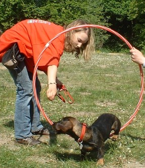 So suchte ich im Internet nach einer passenden Hundeschule für uns. Da stieß ich auf Swantjes Seite, die mir spontan sehr gefiel. Dem ersten Bauchgefühl folgend rief ich bei ihr an. Ein paar Tage später nahmen wir schon am Welpenspiel teil. Nachdem Ay-King und mir Swantje sofort symphatisch war, meldeten wir uns für 9 Einzelstunden an.