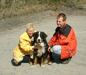 Silke, Ulf und Petzi Den Erstkontakt zu Swantje hatten wir im Sommer 2002 in der Welpenspielgruppe, die unserem Berner-Rüden “Petzi” bestens gefallen hat. Durch das freie Rumtollen und Spielen mit den anderen ” Räubern” hat er die optimale Sozialisierung erfahren. So ist er auch jetzt, mit 1 Jahr, noch sehr kontaktfreudig, so dass er an fast keinem anderen Hund vorbeikommt. Die erste ”Kopfwaschung” verabreichte uns Swantje bei unseren 10 Einzelstunden. Dabei lernten sowohl Petzi, als auch wir die Grundlagen für den sinnvollen Umgang im Team Mensch/Hund kennen. Da Petzi unser erster Hund ist, hatten wir (und haben auch noch) viele Fragen, die uns Swantje immer geduldig beantwortete. Toll finden wir, dass Swantje auf unsere individuellen Bedürfnisse eingeht und die speziellen Eigenarten des Hundes berücksichtigt. Inzwischen haben wir begriffen, dass Petzi nicht unser”Kind” ist (auch wenn es manchmal so scheint) und dass nur Konsequenz zum Ziel führt. Obwohl Petzi nun voll im Rüpelalter ist, wie Swantje sagt ” pubertärer Macker mit tiefergelegtem Golf” und einen totalen Dickschädel hat, klappt es super mit ihm! Wir freuen uns auf den Familienhunde-Kurs und bleiben am Ball....